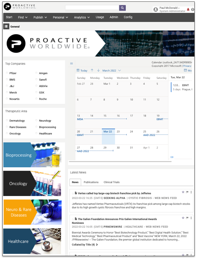 Present clinical trials, medical publications, and other critical health care information in a real time SaaS application, so that healthcare analysts have the most relevant content for their needs